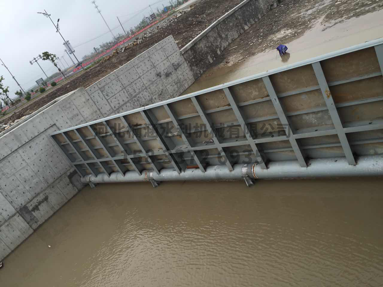 我廠生產(chǎn)的鋼壩是一種新型可調(diào)控溢流壩,它由土建結(jié)構(gòu)、帶固定軸的鋼性壩體、驅(qū)動(dòng)裝置設(shè)備等組成。這種建筑物適合于河道孔口較寬(10米~100米)而水位差比較小的工況(1~6米),由于它可以設(shè)計(jì)得比較寬,可以省去數(shù)孔閘墩,所以不僅結(jié)構(gòu)簡(jiǎn)單,可以節(jié)省不少土建投資,而且可以立壩蓄水,臥壩行洪排澇,還可以利用壩頂過(guò)水,形成人工瀑布的景觀效果。