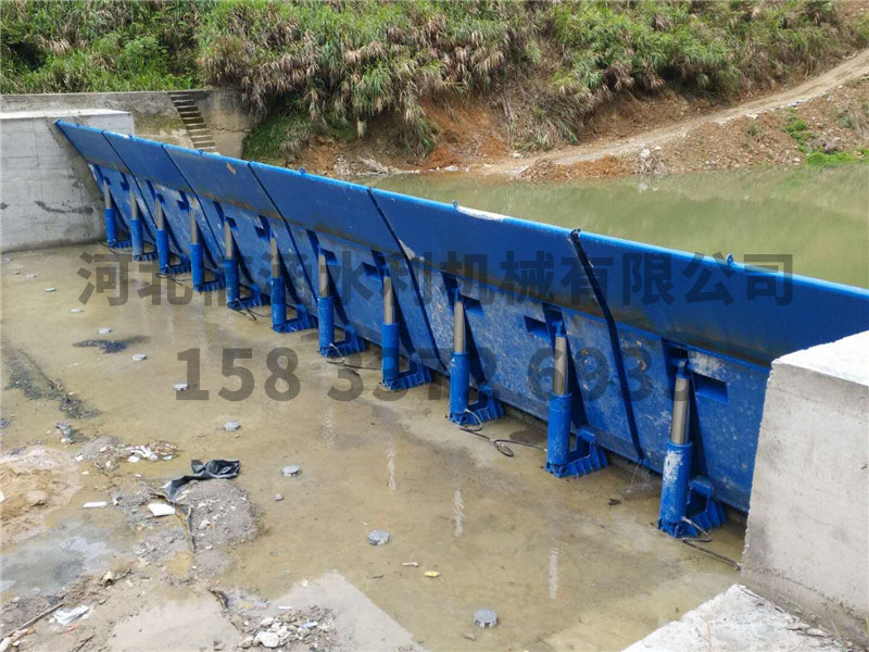 我廠生產(chǎn)的液壓鋼壩是一種新型可調(diào)控溢流壩,它由土建結(jié)構(gòu)、帶固定軸的鋼性壩體、驅(qū)動(dòng)裝置設(shè)備等組成。這種建筑物適合于河道孔口較寬(10米~100米)而水位差比較小的工況(1~6米),由于它可以設(shè)計(jì)得比較寬,可以省去數(shù)孔閘墩,所以不僅結(jié)構(gòu)簡(jiǎn)單,可以節(jié)省不少土建投資,而且可以立壩蓄水,臥壩行洪排澇,還可以利用壩頂過水,形成人工瀑布的景觀效果。