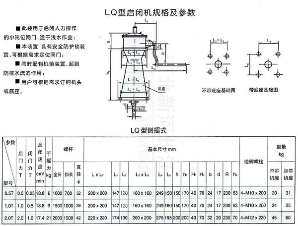 LQ型手搖螺桿式啟閉機技術參數(shù)