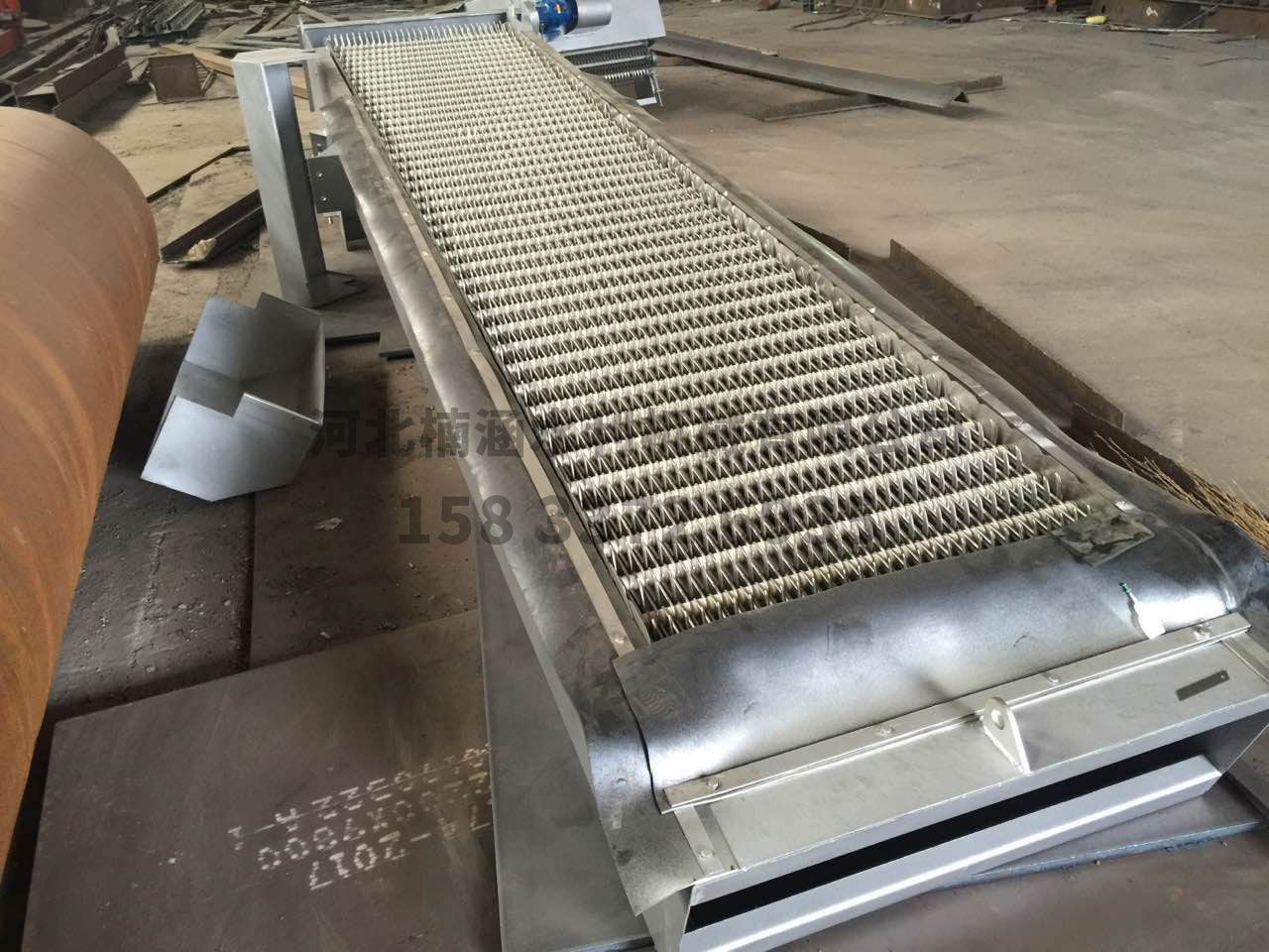 在污水處理前工序中,攔截、清除各種固體顆粒物、漂浮物等。使后續(xù)處理工序得以順利進行。是市政污水、工業(yè)污水;紡織、造紙等處理過程中攔污、除渣的關(guān)鍵設(shè)備。該機有柵齒柵齒軸、鏈板等組成柵網(wǎng),以替代傳統(tǒng)格柵的柵條。柵網(wǎng)在機架內(nèi)作回轉(zhuǎn)運動,從而將污水中的懸浮物攔截并不斷分離水中的懸浮物,因而工作效率高,運動平穩(wěn)格柵前后水位差小,并且不堵塞。