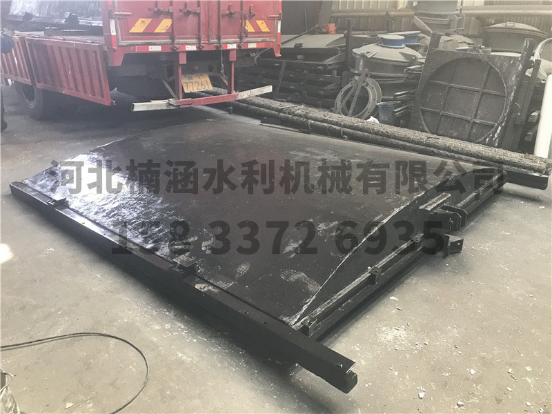 三、鑄鐵閘門安裝使用 鑄鐵閘門安裝是否正確,決定了閘門的止水效果,安裝時一定要認(rèn)真閱讀安裝說明書或按我公司現(xiàn)場指導(dǎo)安 裝人員的要求正確安裝。鑄鐵閘門的門槽與板面為整體安裝,二次澆注方式(亦可一次性整體安裝澆注)。出廠前閘 框與門體已調(diào)整好間隙,并用螺栓固定好,固定螺栓必須要等二次澆注完成并凝固后,方可去除,固定螺栓的位置 上面在門楣的迎水面一側(cè),下面在底檻的背水面一側(cè)。安裝時首先固定好啟閉機(jī),運用啟閉機(jī)螺桿將閘門吊起,放 置閘槽中,調(diào)整閘門方向,使之與水流方向保持垂直,然后將閘門固定,我廠已在門框上打好調(diào)整固定孔,可用螺 栓進(jìn)行調(diào)整固定,免去傳統(tǒng)用木楔石塊固定的不便,固定好即可進(jìn)行二次澆注。鑄鐵閘門的板面與閘槽為偶合件配 套,在搬運、倉儲及安裝時不得互換,以免影響止水效果。閘門的迎水面一定要按設(shè)計要求安裝,否則會因板面受 力方向不對,引起板面斷裂,遇反向受壓時一定要在訂貨時說明,防止發(fā)生重大事故。在訂貨時要提供孔口尺寸, 水頭,提升高度和結(jié)構(gòu)形式,閘板面一般為正向(迎水面)受壓,如需反向受壓,訂貨時需說明,止水一般是后止水 (背水面),需前止水時,訂貨時應(yīng)說明,使用時必須按操作規(guī)程操作。經(jīng)常檢查閘門板與閘槽是否卡澀,及時將卡 澀物清除,保證位置置中,使設(shè)備正常運行。本公司的鑄鐵閘是按照水利部SL36—2006和《水利水電工程鋼閘門 制造、安裝及驗收的規(guī)范》GB/T14173—2008規(guī)范設(shè)計制造。